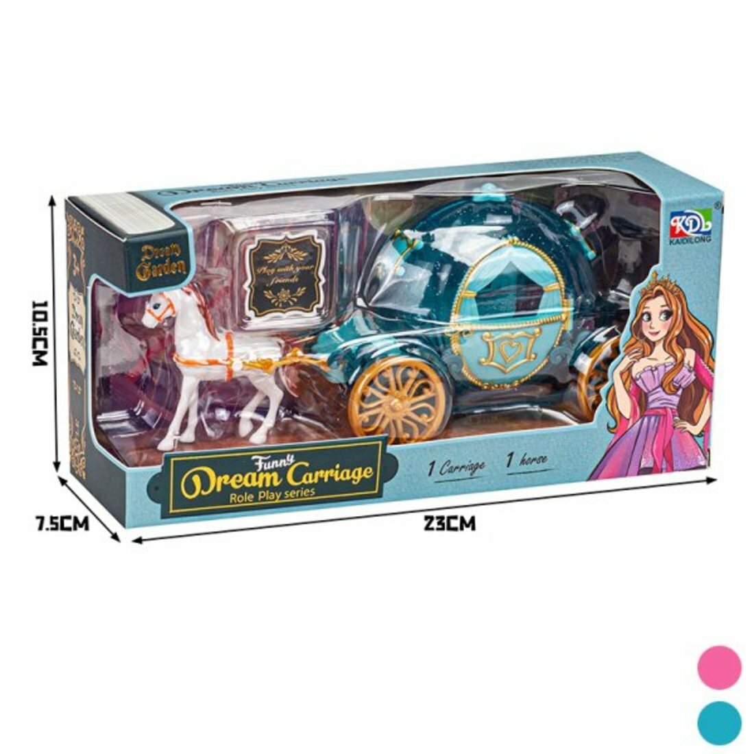 Размер кареты (ДхШхВ): 14х7х9 см, размер лошадки: 6х2х7 см.