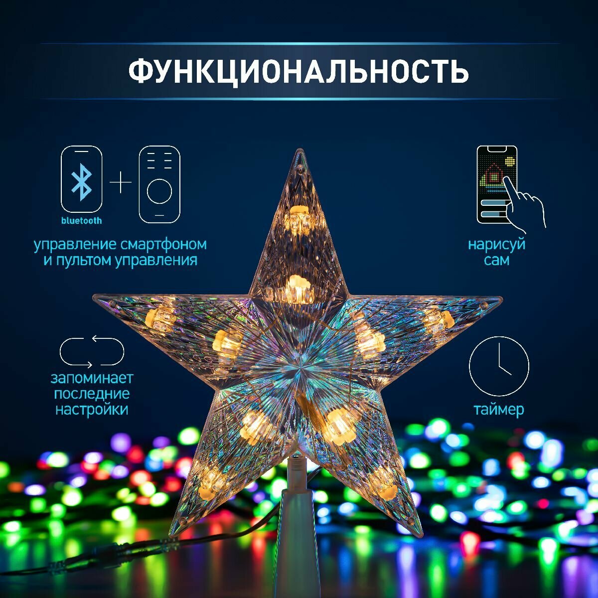 15м. Гирлянда со звездой на елку RGB Эра ERASG -03 упр. через мобильное приложение (Б0060434)