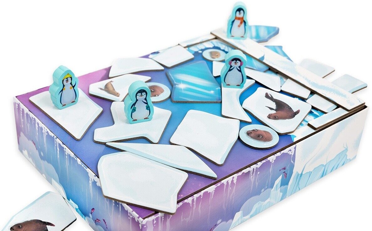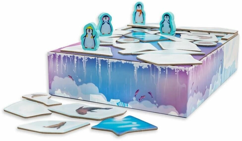 Это кооперативная детская игра с объёмным полем, в которой маленькие любители настолок будут сообща спасать милых пингвинчиков.