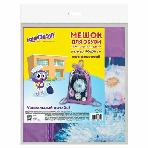 Мешок ЮНЛАНДИЯ изготовлен из плотного полиэстера с водоотталкивающей пропиткой. Яркая и четкая печать дизайна на мешке достигнута за счет использования высококачественной ткани с высокой плотностью.