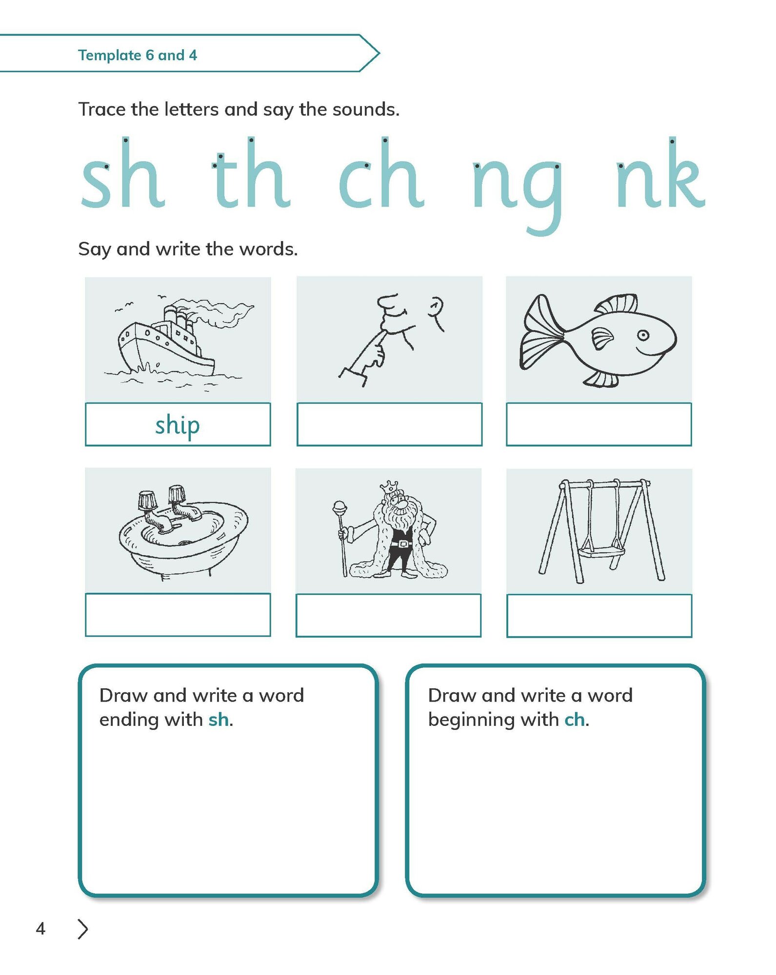 Рабочая тетрадь по фонетике поможет ученикам начальных или подготовительных классов подготовиться к уверенному чтению и письму. Разделы Look back, помогают учащимся повторить то, что они изучали в предыдущих разделах, обеспечивая практику и закрепление знаний. Рабочая тетрадь развивает раннюю речь и письмо с возможностью прослеживать и произносить звуки букв.