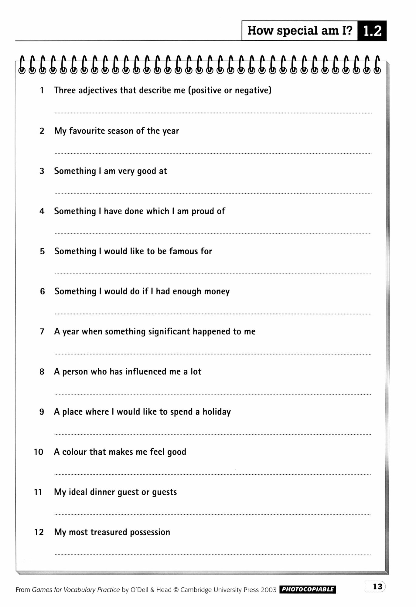 A selection of more than 50 vocabulary games and activities for classroom use, based on 18 topic-based units. This book enables students to practise key vocabulary in an enjoyable way through a range of fun games and activities.