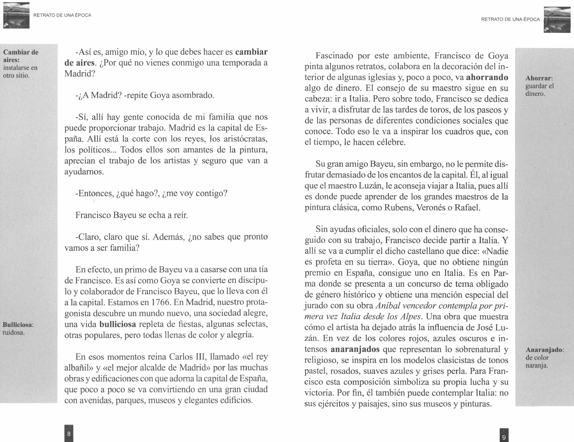 Este gran genio de la pintura, hombre de temperamento vivo, entregado a la pintura es tambien un artista dotado de una magnifica imaginacion. Su obra va a reflejar el confuso periodo historico en que vive, particularmente la Guerra de la Independencia.