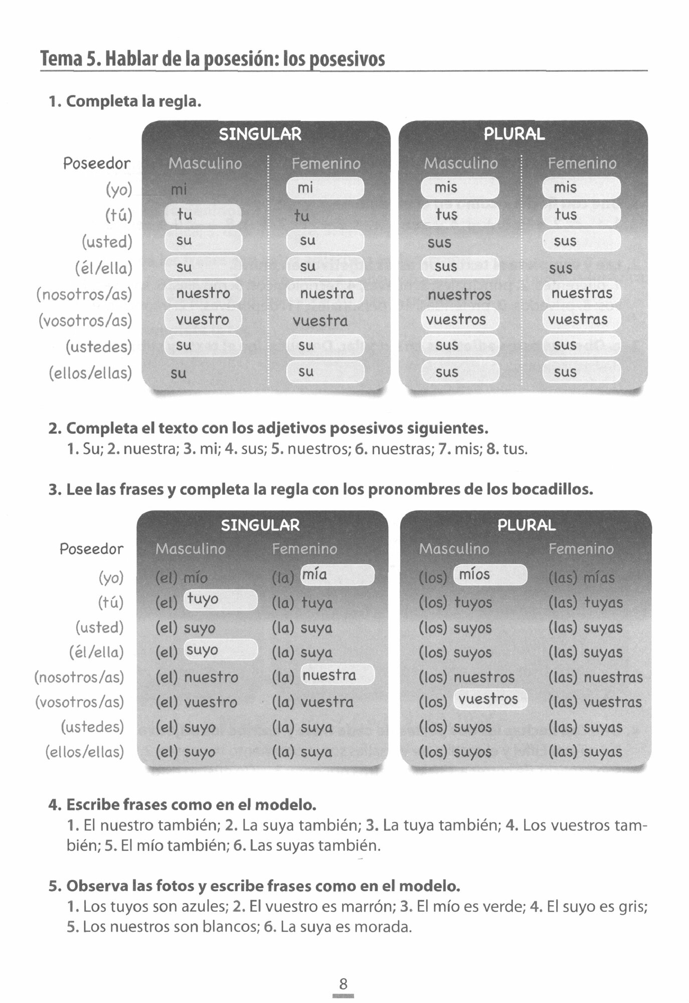 Las soluciones de los ejercicios de cada tema.