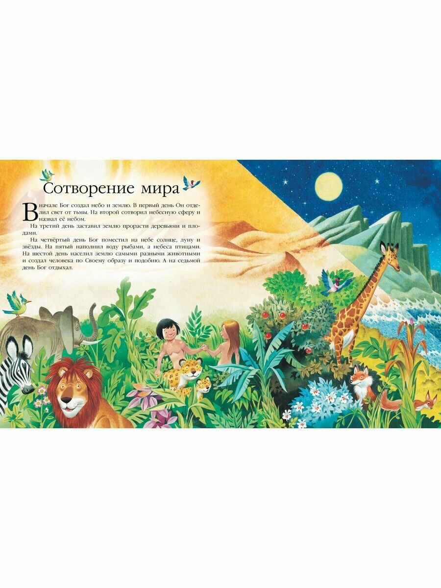 В книгу "Библия для самых маленьких" вошли адаптированные истории из Ветхого Завета с великолепными иллюстрациями знаменитого итальянского художника Тони Вульфа. На каждом развороте детей ждёт своя история: от сотворения мира до восстановления храма Господня в Иерусалиме. Дети узнают истории Адама и Евы, Каина и Авеля, Ноя и Моисея и многих других, рассказы о которых передавались из уст в уста многими поколениями людей.