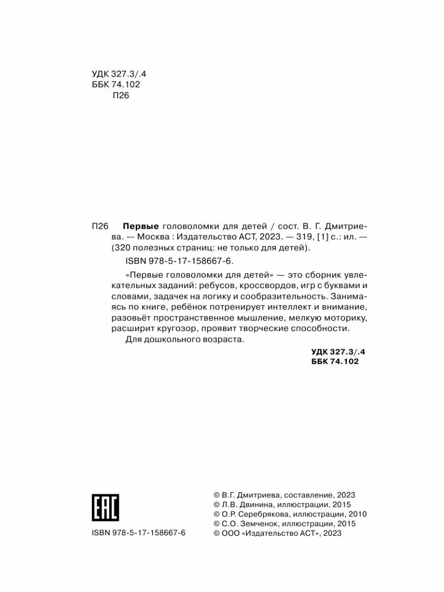 Первые головоломки для детей (Дмитриева Валентина Геннадьевна); Сова. Малыш (Обучающая и развивающая литература), 2023
