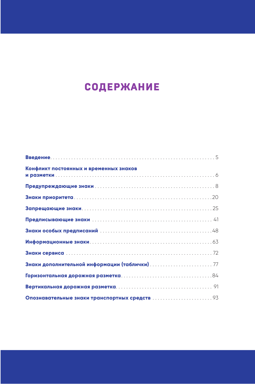 В книге в доступной форме представлены дорожные знаки и разметка.