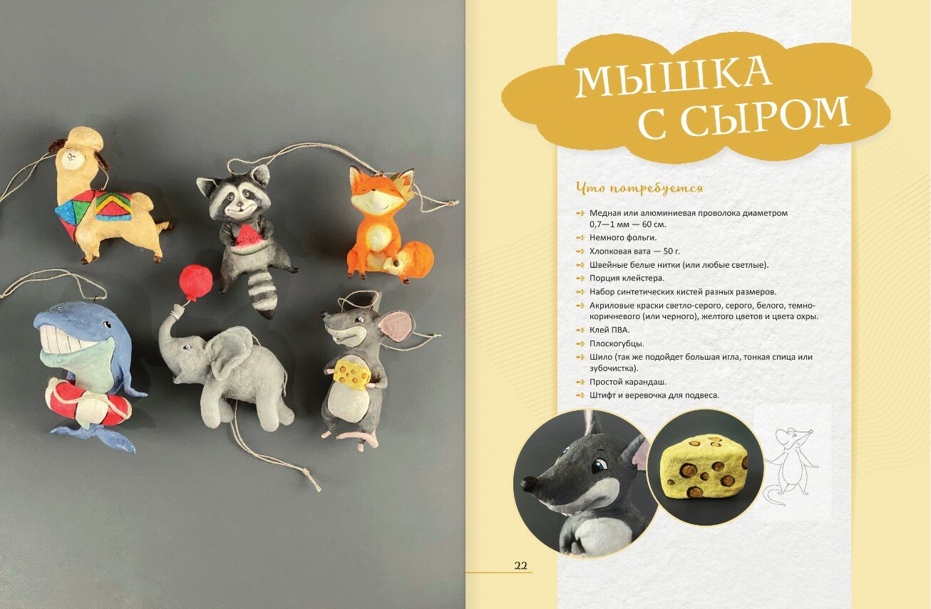 С помощью этой книги вы сможете создать шесть веселых зверюшек: слоника с шариком, мышку с сыром, кита, лисичку, енота с арбузом, альпаку.
