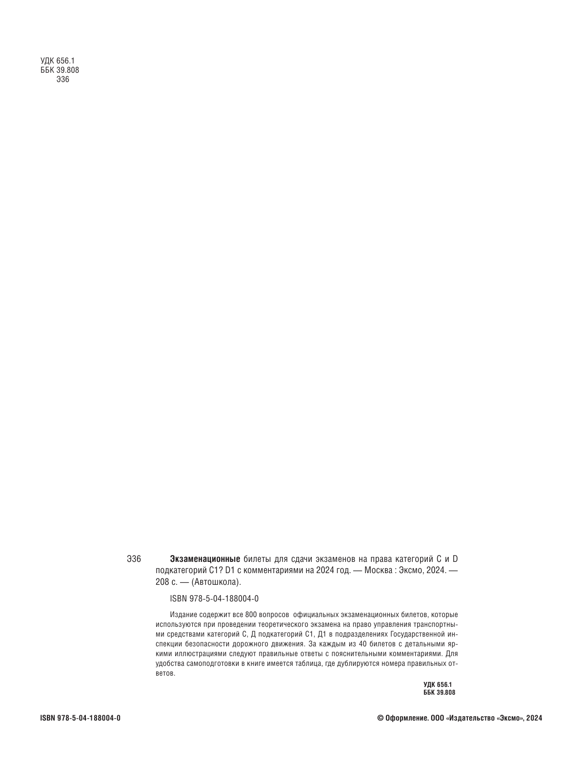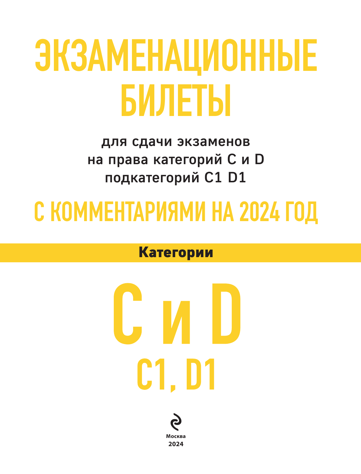 Экзаменационные билеты для сдачи экзаменов на права категорий C и D подкатегорий C1 D1 с комментариями на 2024 год (без автора); ООО "Издательство "Эксмо", 2023