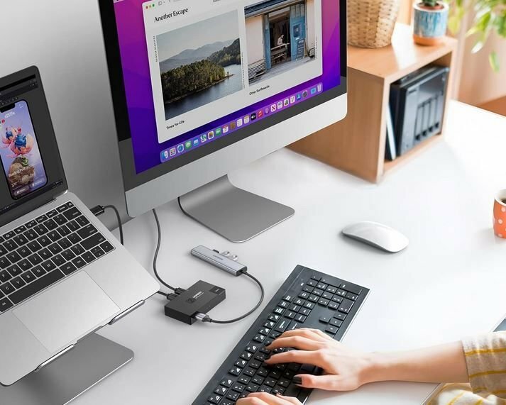 Если вы хотите подключить этот коммутатор к Mac или другим хост-устройствам, имеющим только порт USB C, вам необходимо использовать адаптер USB C — A с кабелем USB A — A. Это не будет работать при прямом использовании кабеля USB C — A.
