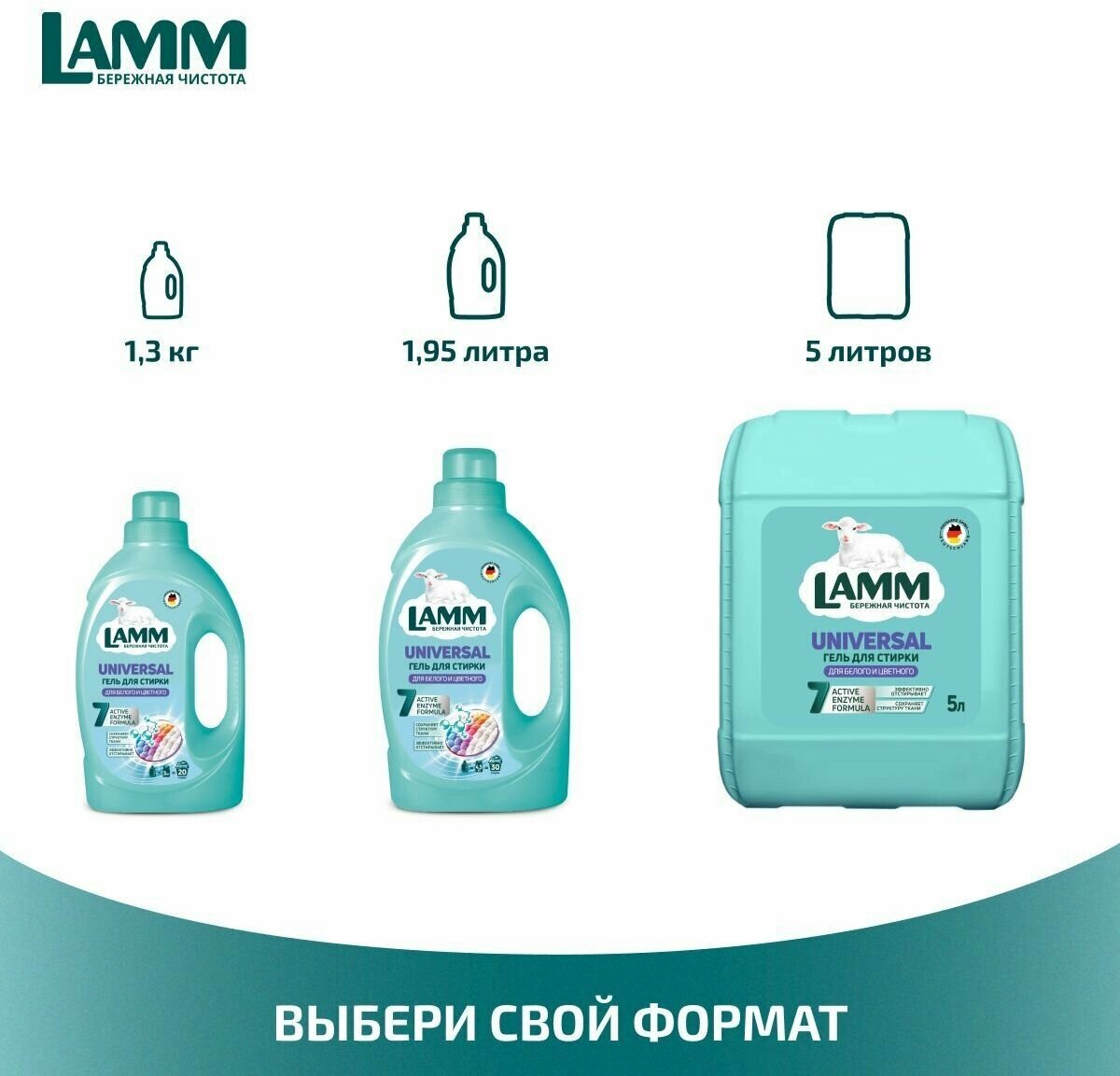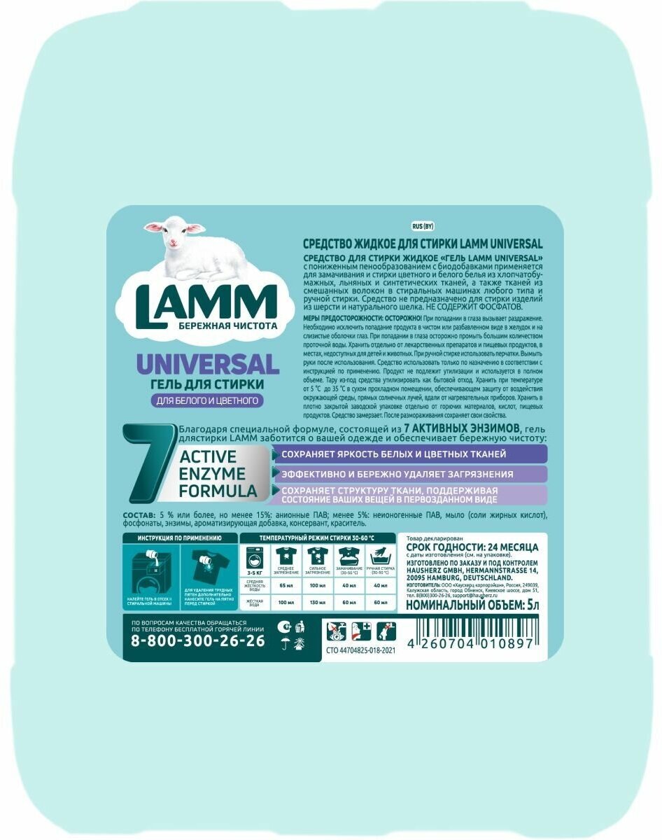 Уникальная формула подходит для стирки цветного и белого белья. В состав гелей и капсул LAMM Universal входят специальные компоненты, которые сохраняют яркость цветного и белизну белого.