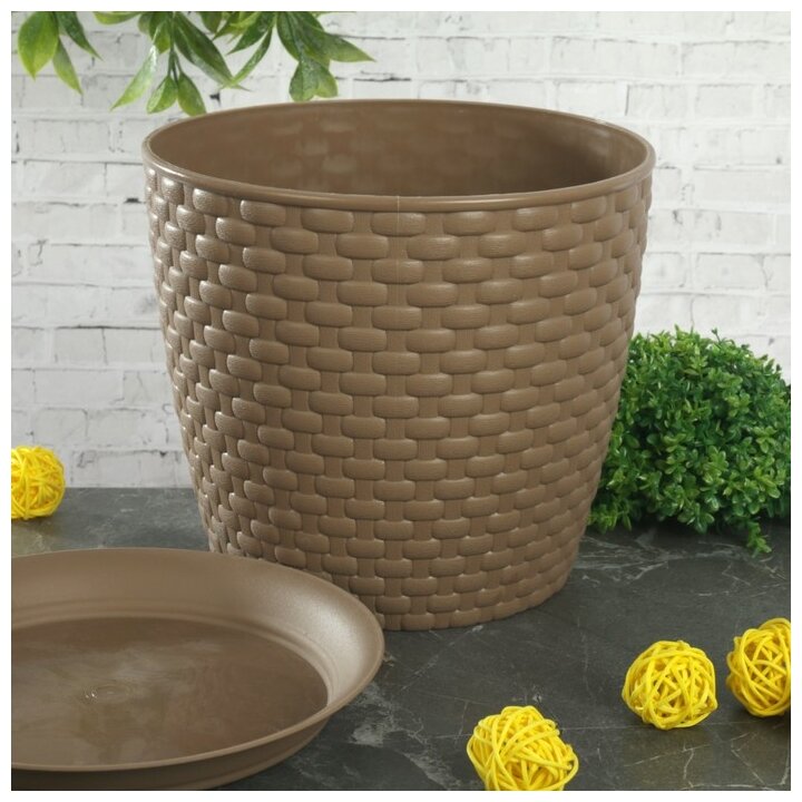 Кашпо РОТАНГ D180мм 3л с поддоном коричневый Idea С поддоном ротанг