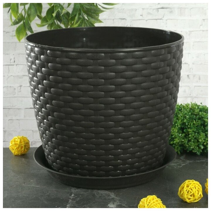 Кашпо РОТАНГ D210мм 47л с поддоном цвет коричневый ротанг Idea Ротанг с поддоном