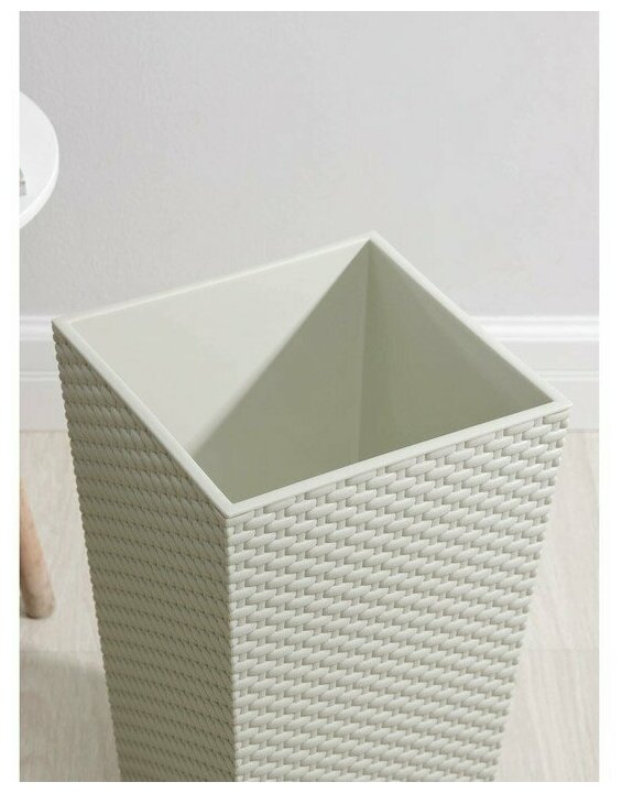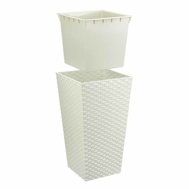 Кашпо IDEA Ротанг выполнено из ударопрочного плотного полипропилена. Высокий декоративный вазон с квадратным сечением снабжен внутренним техническим горшком для посадки растений.