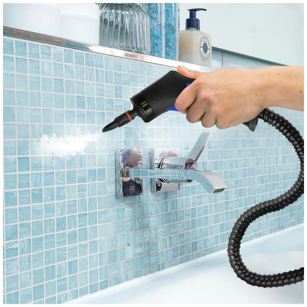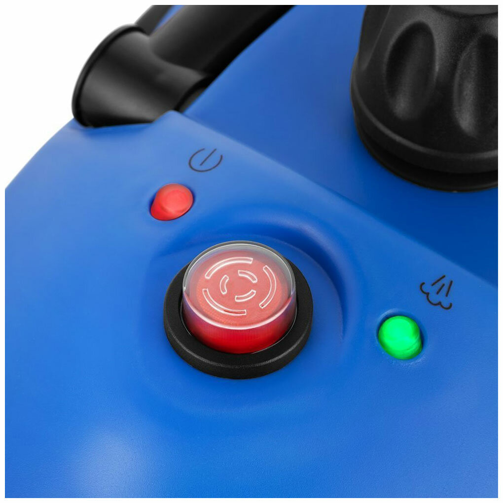 Пароочиститель КТ-9136 предназначен для уборки интерьеров, полов, поверхностей, а также отпаривания тканей. КТ-9136 – многофункциональный аппарат, который может заменить паровую швабру, дезинфектор, стеклоочиститель и отпариватель. Кнопка «Вкл/Выкл» запускает нагрев бойлера и отключает прибор. Индикатор работы загорается после нажатия на кнопку и горит всё время работы прибора. Индикатор готовности пара загорается, когда бойлер нагрелся, и пароочиститель готов к подаче пара. Управление располагается на паровом пистолете. Кнопка подачи пара располагается под пальцем. Чтобы предотвратить случайное нажатие на кнопку подачи пара, на паровом пистолете есть блокиратор.