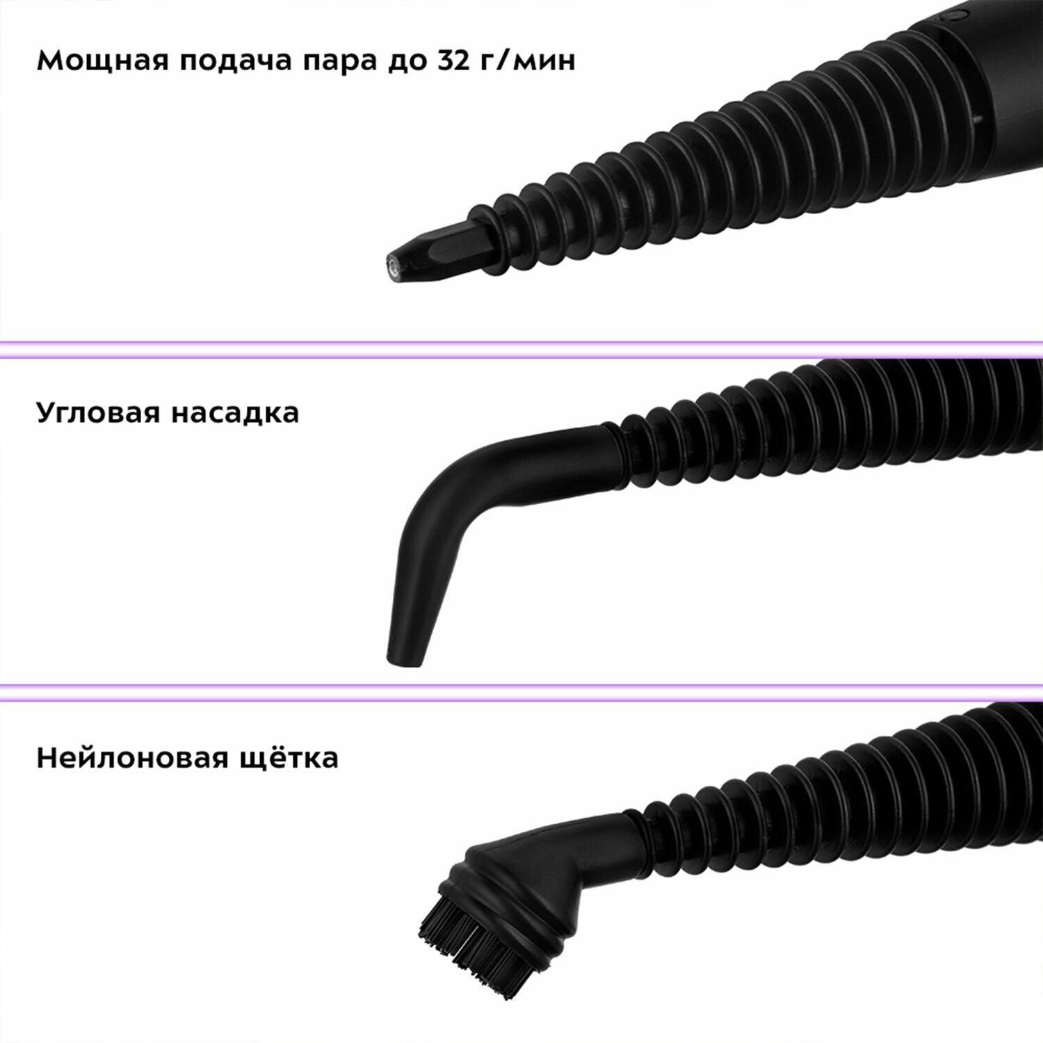 | В комплекте | паровой пистолет, форсунка точечной струи, круглая щетка, высоконапорная форсунка, ручная форсунка |