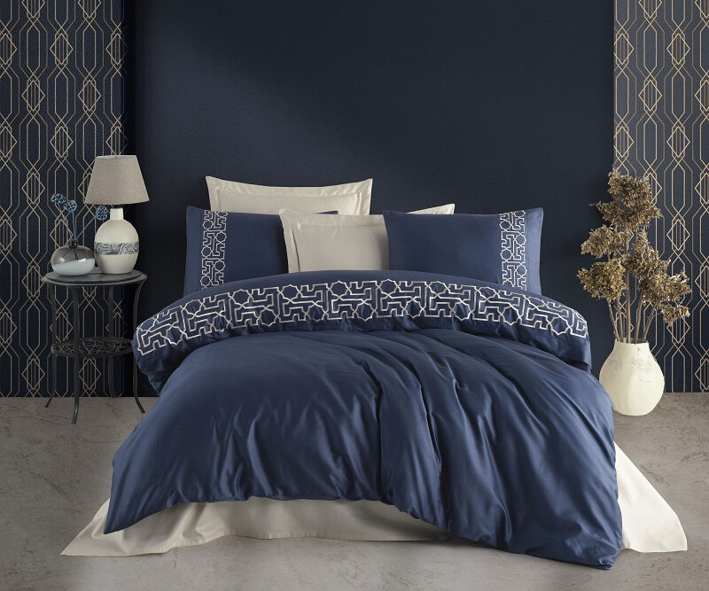 Комплектация: Евро, см: Пододеяльник 200*220 — 1 шт, Простыня 240*260 — 1 шт, Наволочка 50*70 — 4 шт.Комплект постельного белья из высококачественного сатина (100% хлопок) с нежной растительной вышивкой. Бархатистая мягкая ткань с эффектом глянца украсит любую спальню, ведь в сатине гармонично объединены элегантность шелка и практичность хлопка! Гладкая шелковистая с лицевой стороны и матовая плотная с изнанки придает особый комфорт во время сна.