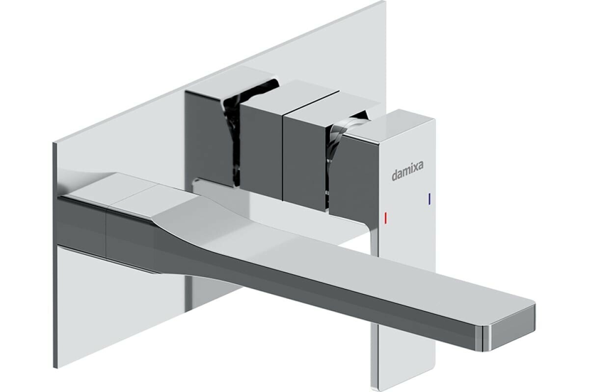 Корпус смесителя 1 шт. монтажная часть; излив 1 шт.; инструкция изделия. Хромированный, встраиваемый смеситель для раковины, строгие прямоугольные формы