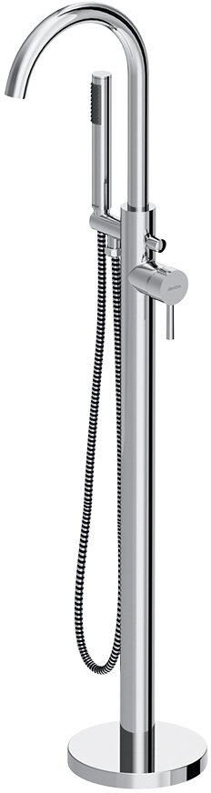 Корпус смесителя 1 шт.; излив 1 шт.; кронштейн крепления 1 шт.; комплект крепежный 1 шт.; ручной душ 1 шт.; шланг 1 шт.; гибкая подводка 2 шт.; декоративная розетка 1 шт.; инструкция изделия. Хром, высокий отдельностоящий смеситель для ванны и душа, ручка Stick