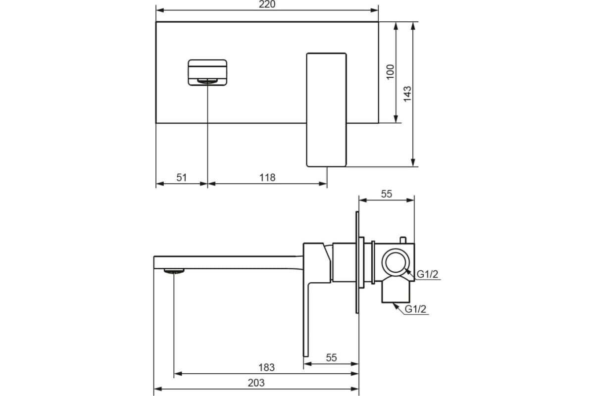 Корпус смесителя 1 шт. монтажная часть; излив 1 шт.; инструкция изделия. Черный матовый, встраиваемый смеситель для раковины, строгие прямоугольные формы