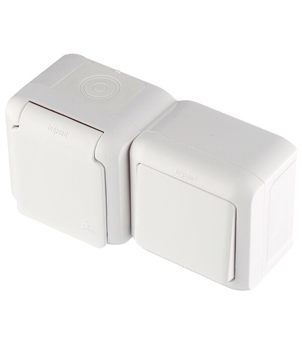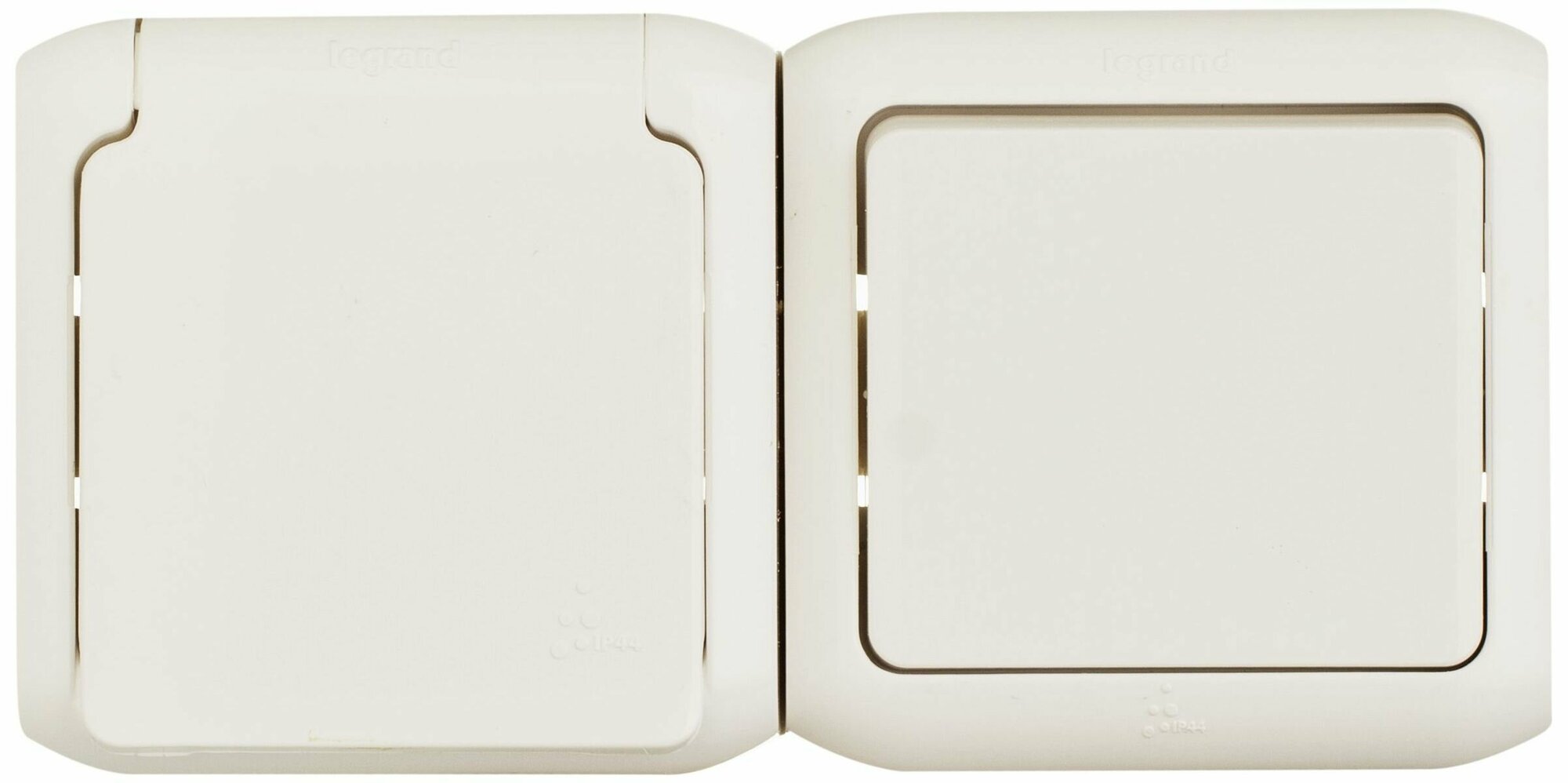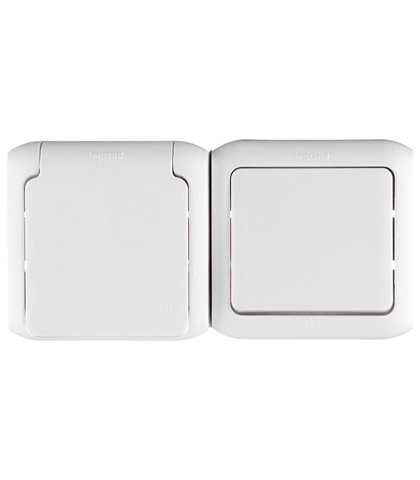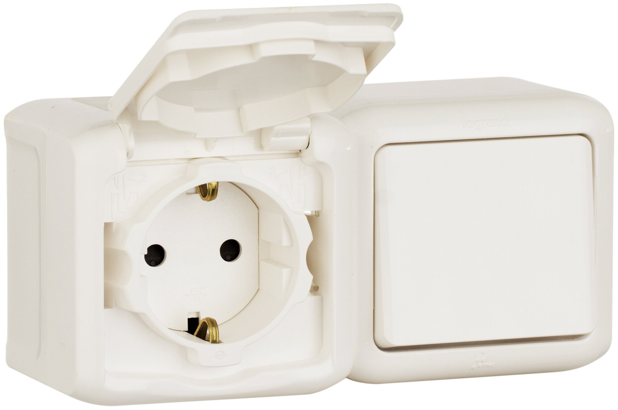 Выключатель с розеткой LEGRAND Quteo одноклавишный IP44 белый Выключатель+розетка