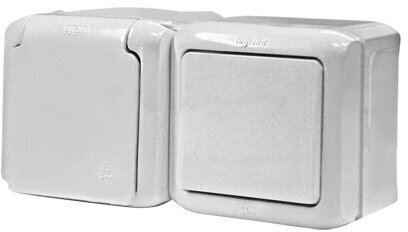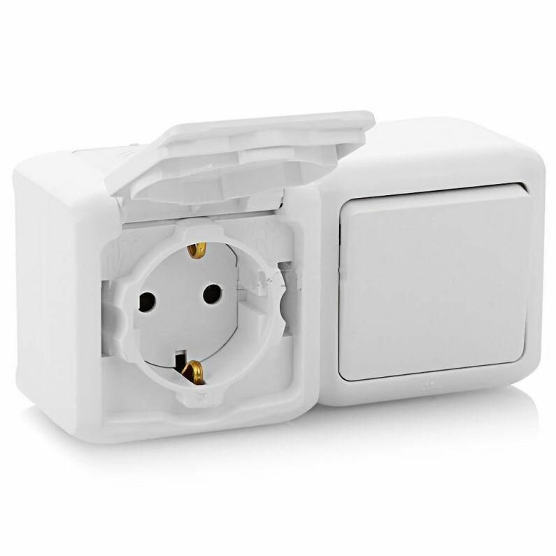 - Выключатель одноклавишный и розетка с заземлением IP54 VIKO Palmiye