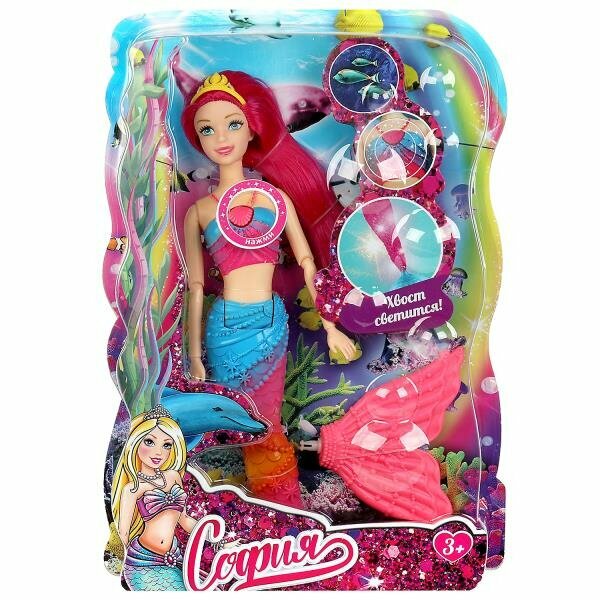Прекрасная русалка София одета в элегантный сине-розовый топ и, как у всех русалок, у неё есть красивый, с украшениями, хвост. Образ дополняет яркая корона. Кроме того, у Софии есть волшебный амулет, при нажатии на который начинает светиться хвост. С такой куклой девочке будет интересно и весело играть. У Софии длинные красивые волосы, которые хозяйка куклы сможет заплетать в разные причёски. Детально проработанный дизайн игрушки вдохновит девочку на новые игровые сюжеты.