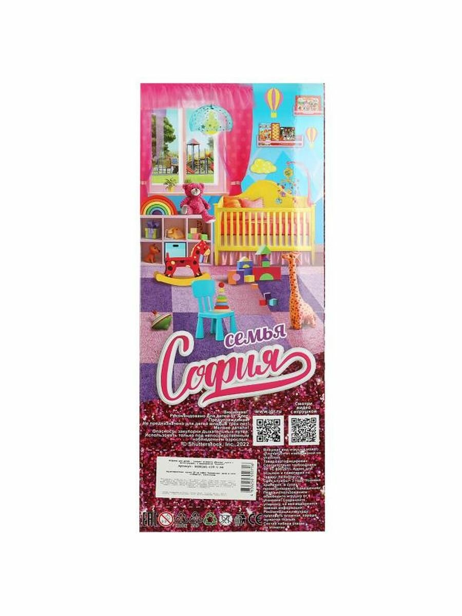 Будущая мама София одета в сиреневую кофточку и блестящие брюки. Образ куколки дополняют модные крупные серьги и стильный рюкзак. Одежду и аксессуары легко снять и надеть. С такой модной куклой девочке будет интересно и весело играть: благодаря тому, что руки и ноги куклы подвижны, им можно придать любое положение. У Софии длинные красивые волосы, которые хозяйка куклы сможет заплетать в разные причёски. Детально проработанный дизайн игрушки вдохновит девочку на новые игровые сюжеты.