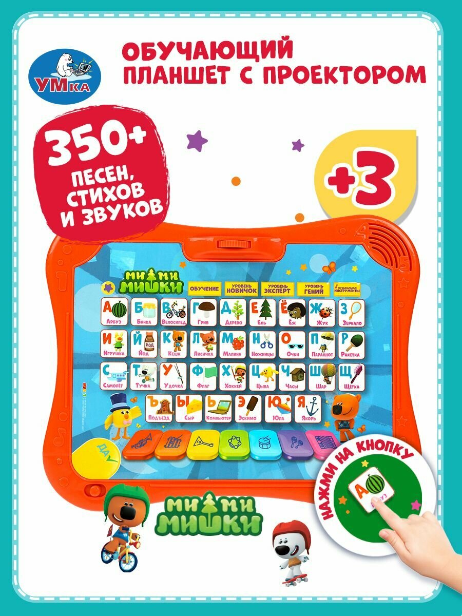 Обучающий планшет с проектором «Ми-ми-мишки» станет прекрасным подарком для маленьких поклонников мультсериала про весёлых медвежат и их друзей: