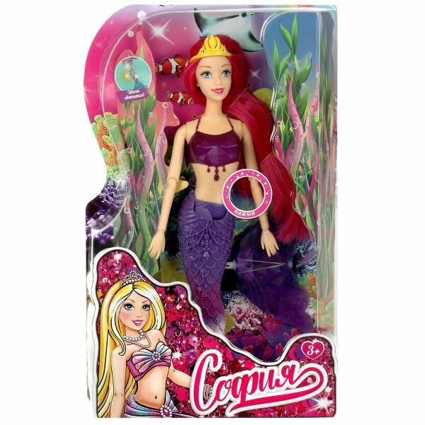 Прекрасная русалка София одета в элегантный фиолетовый топ и, как у всех русалок, у неё есть красивый, с украшениями, хвост. Образ дополняет яркая корона. При нажатии на специальную кнопочку начинает светиться хвост. С такой куклой девочке будет интересно и весело играть. У Софии длинные красивые волосы, которые хозяйка куклы сможет заплетать в разные причёски. Детально проработанный дизайн игрушки вдохновит девочку на новые игровые сюжеты.