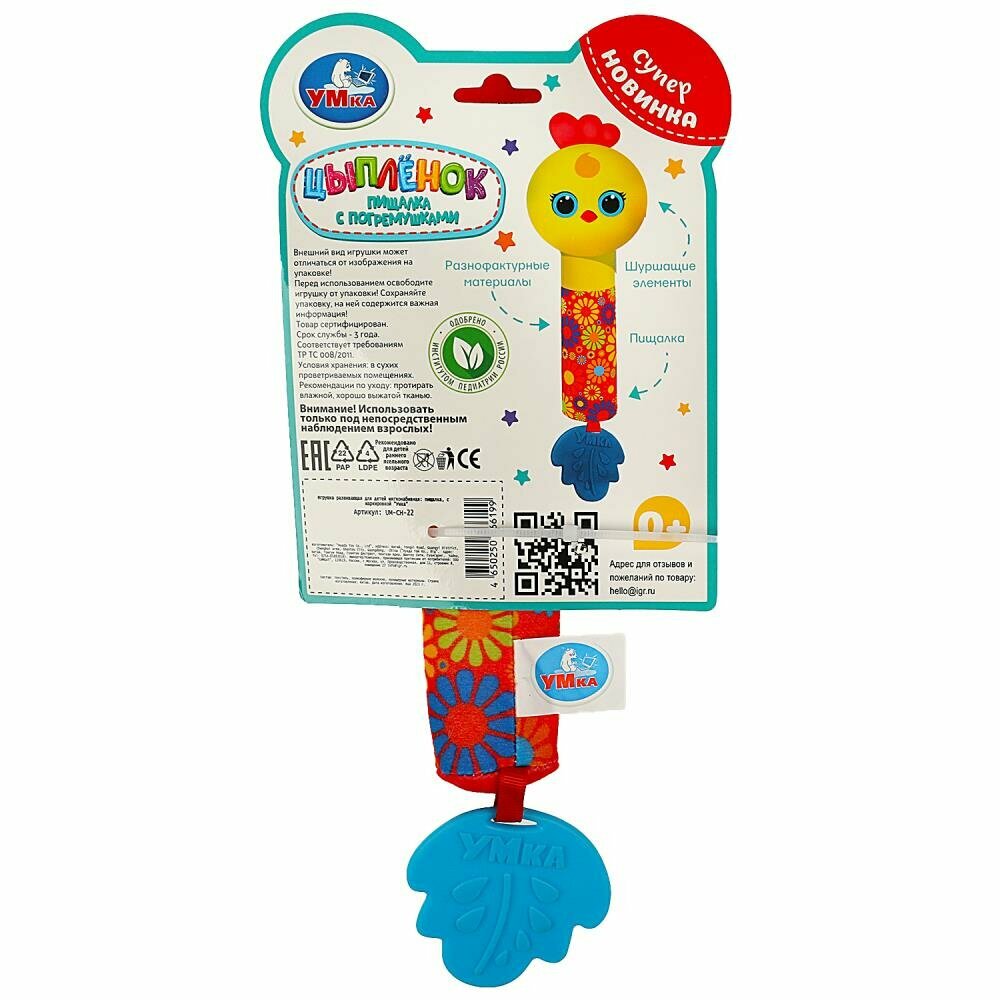 Погремушка Умка Текстильная пищалка Цыпленок