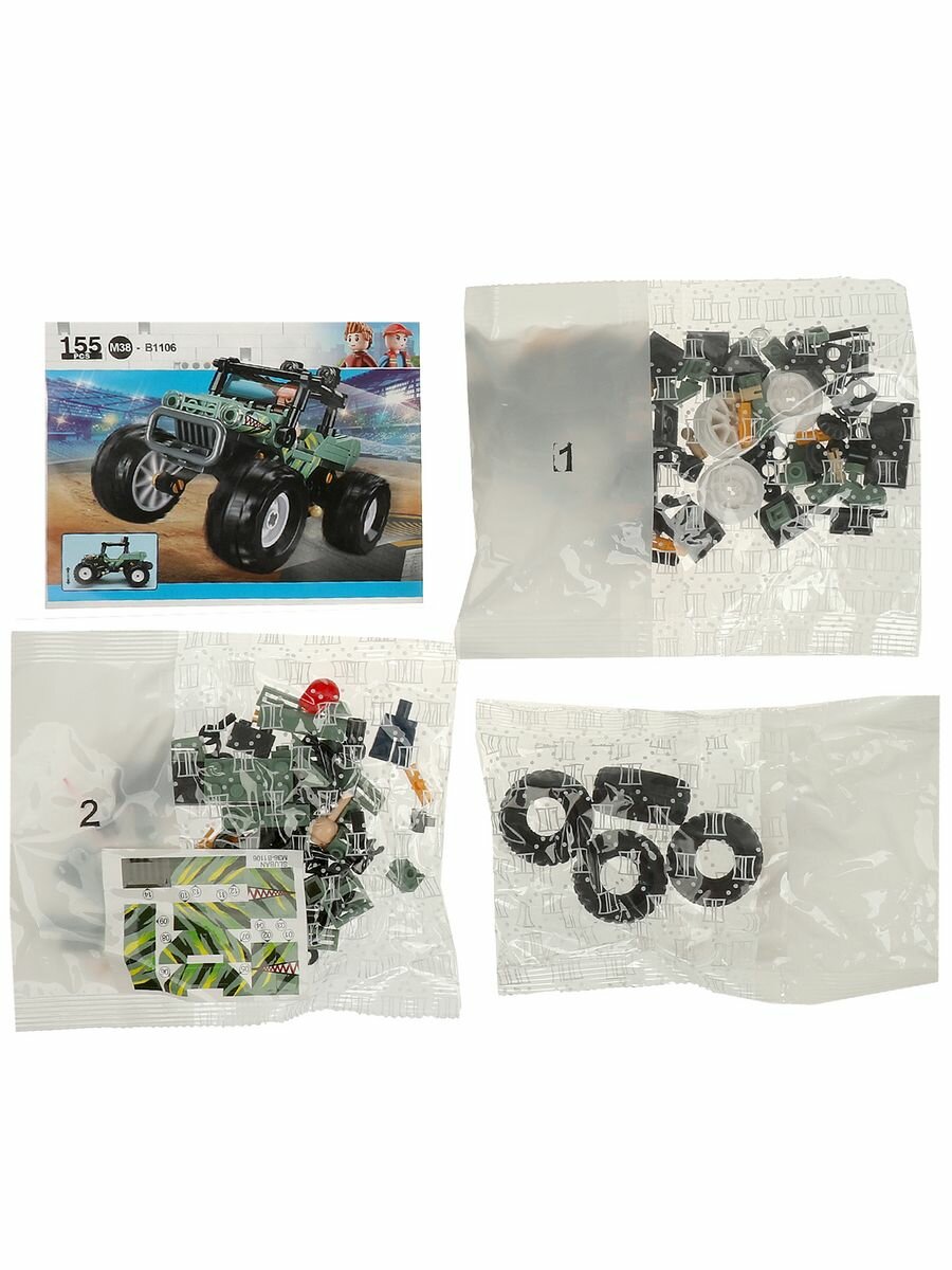 Из пластиковых деталей, входящих в данный набор, ребёнок сможет сконструировать мощный внедорожник-бигфут, а затем, используя фигурку персонажа, придумать с ними множество интересных игровых сюжетов.