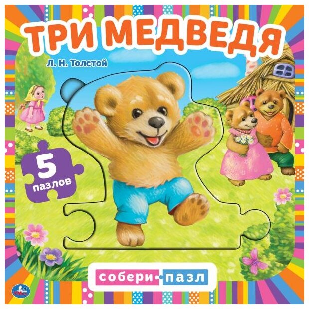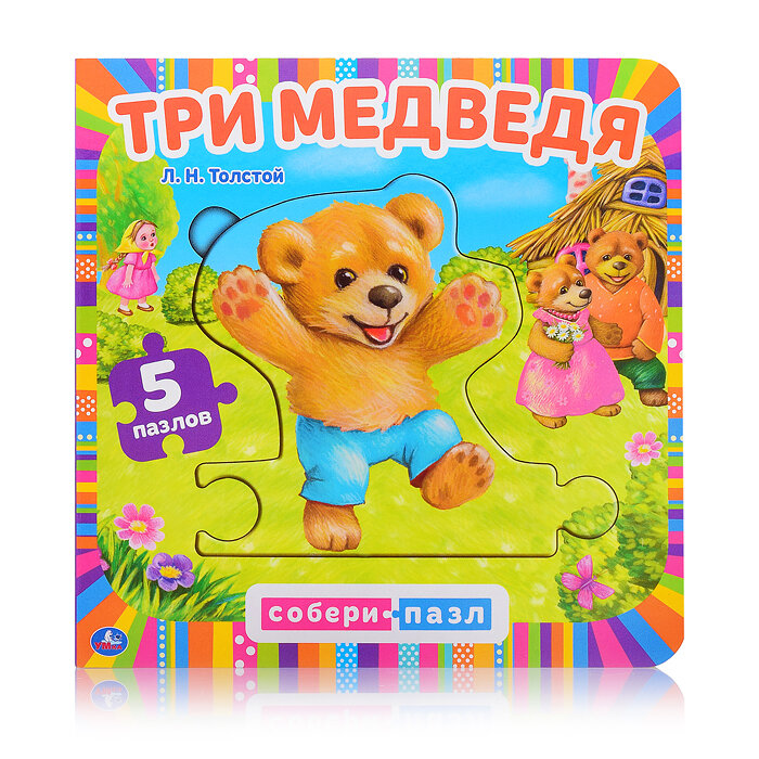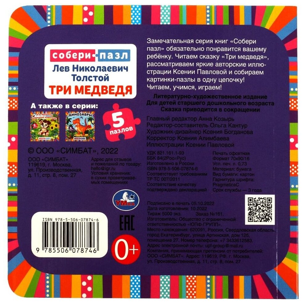 Книга-пазл 2 в 1. 5 пазлов. Л. Н. Толстой. Три медведя, ТМ «УМка»: