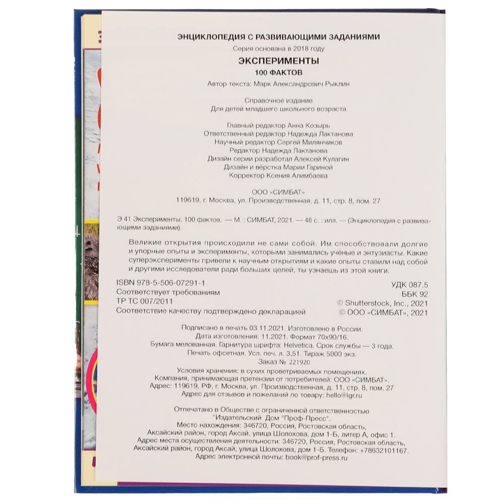 Энциклопедия с развивающими заданиями. 100 фактов. Эксперименты (Рыклин Марк Александрович); Умка, 2022