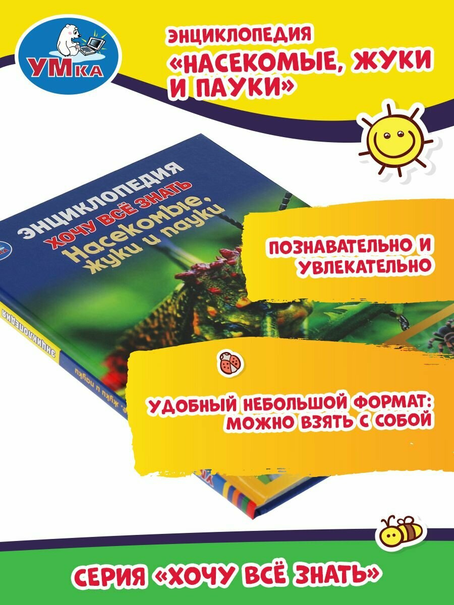 Сервис сравнения цен СкидкаГИД предлагает сравнить цены на товар «Книга: Насекомые жуки и пауки. Хочу все знать. Энциклопедия А5. 165х215мм 96 стр. Умка в кор.22шт (Алексеев В. Павлинов И. - научный редактор Хомякова К. - гл. редактор, Хохлова Е. отв. редактор); Умка, 2021»