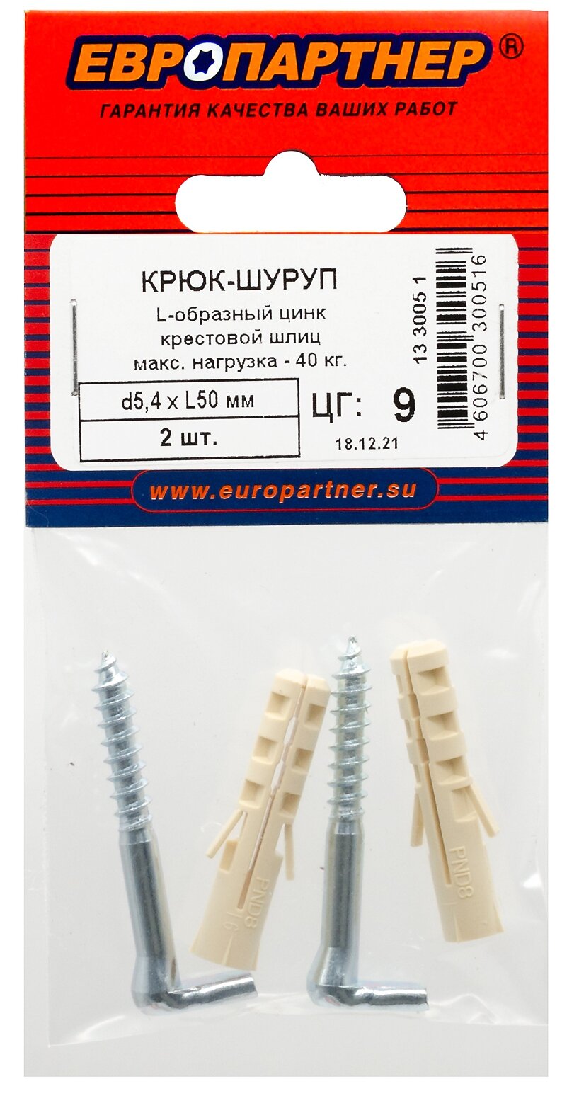 Сервис сравнения цен СкидкаГИД предлагает сравнить цены на товар «Крюк - шуруп L-образный Zn 50 х 50 Европартнер d5,4хL50 мм, 2 шт.»