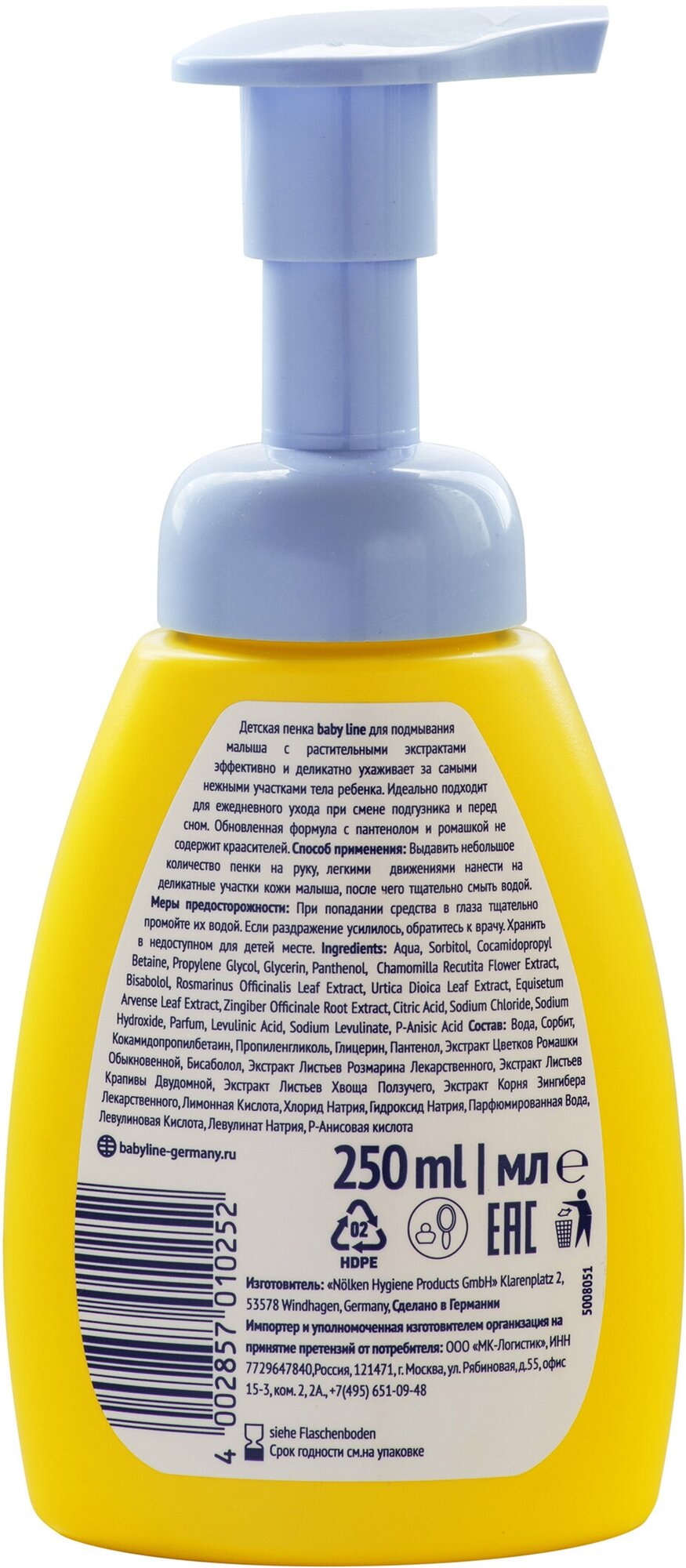 Детская пенка для подмывания малыша baby line с растительными экстрактами эффективно и деликатно ухаживает за самыми нежными участками тела ребенка. Мягкая структура пенки предупреждает возможные раздражения и покраснения. Растительные экстракты обеспечивают надежную защиту и интенсивное увлажнение. Идеально подходит для ежедневного ухода при смене подгузника и перед сном. Детская пенка для подмывания малыша baby line с растительными экстрактами эффективно и деликатно ухаживает за самыми нежными участками тела ребенка. Мягкая структура пенки предупреждает возможные раздражения и покраснения. Растительные экстракты обеспечивают надежную защиту и интенсивное увлажнение. Идеально подходит для ежедневного ухода при смене подгузника и перед сном. Обновленная формула с пантенолом и ромашкой не содержит красителей.