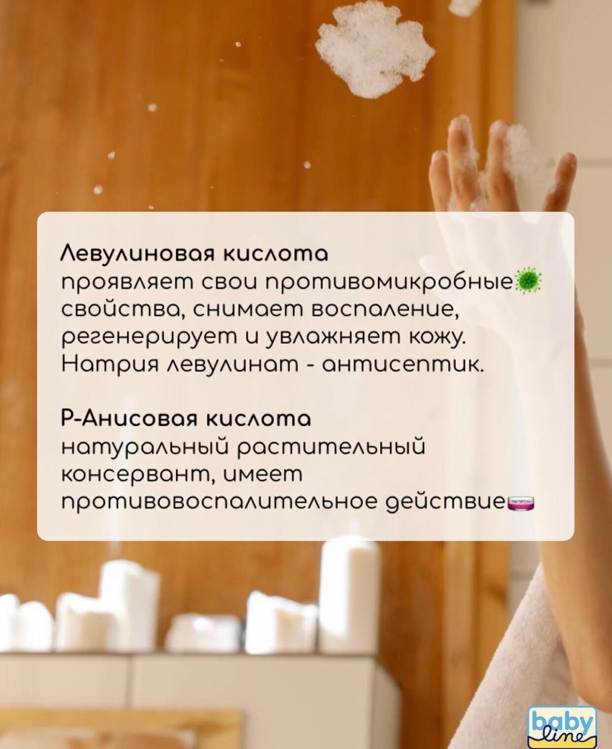 | Способ применения | Выдавить небольшое количество пенки на руку, легкими движениями нанести на деликатные участки кожи малыша, после чего тщательно смыть водой. |
