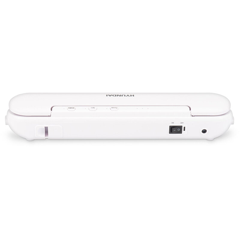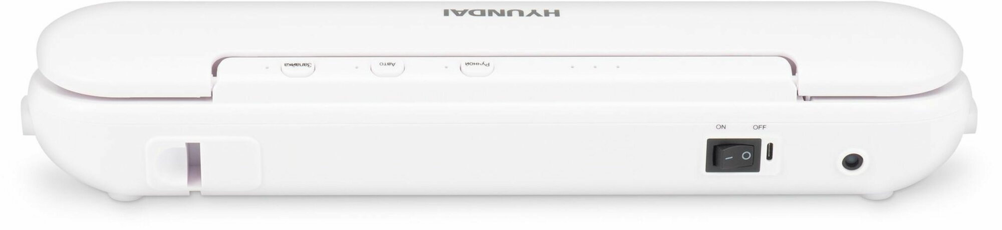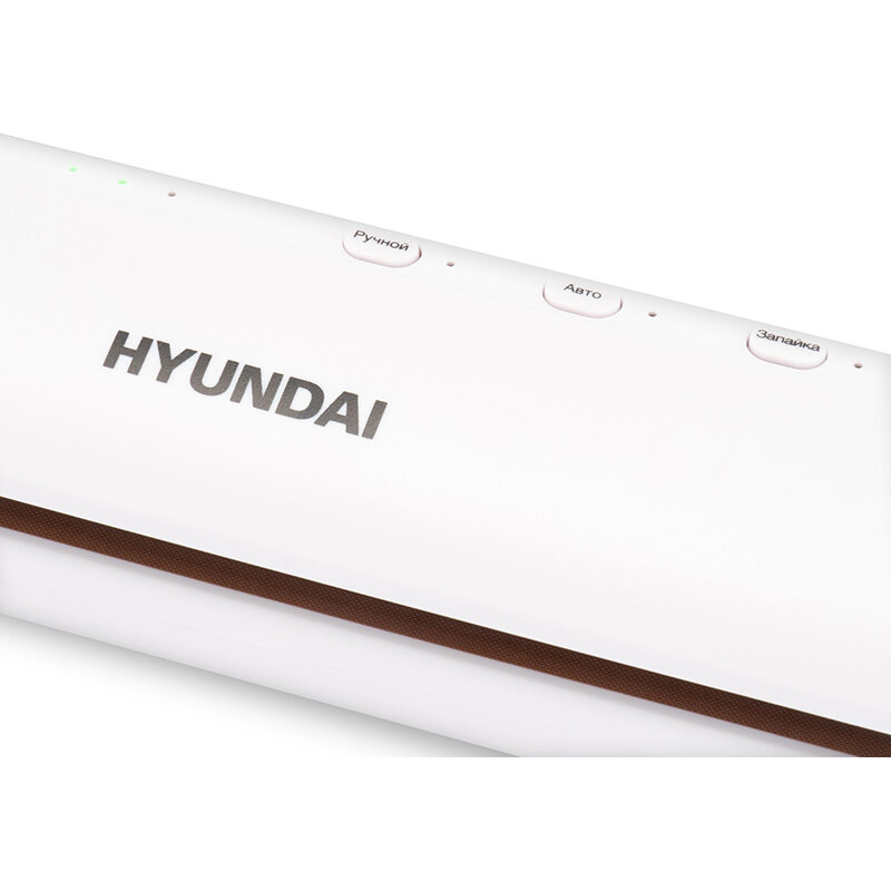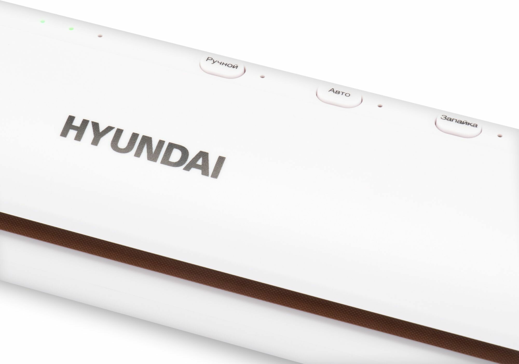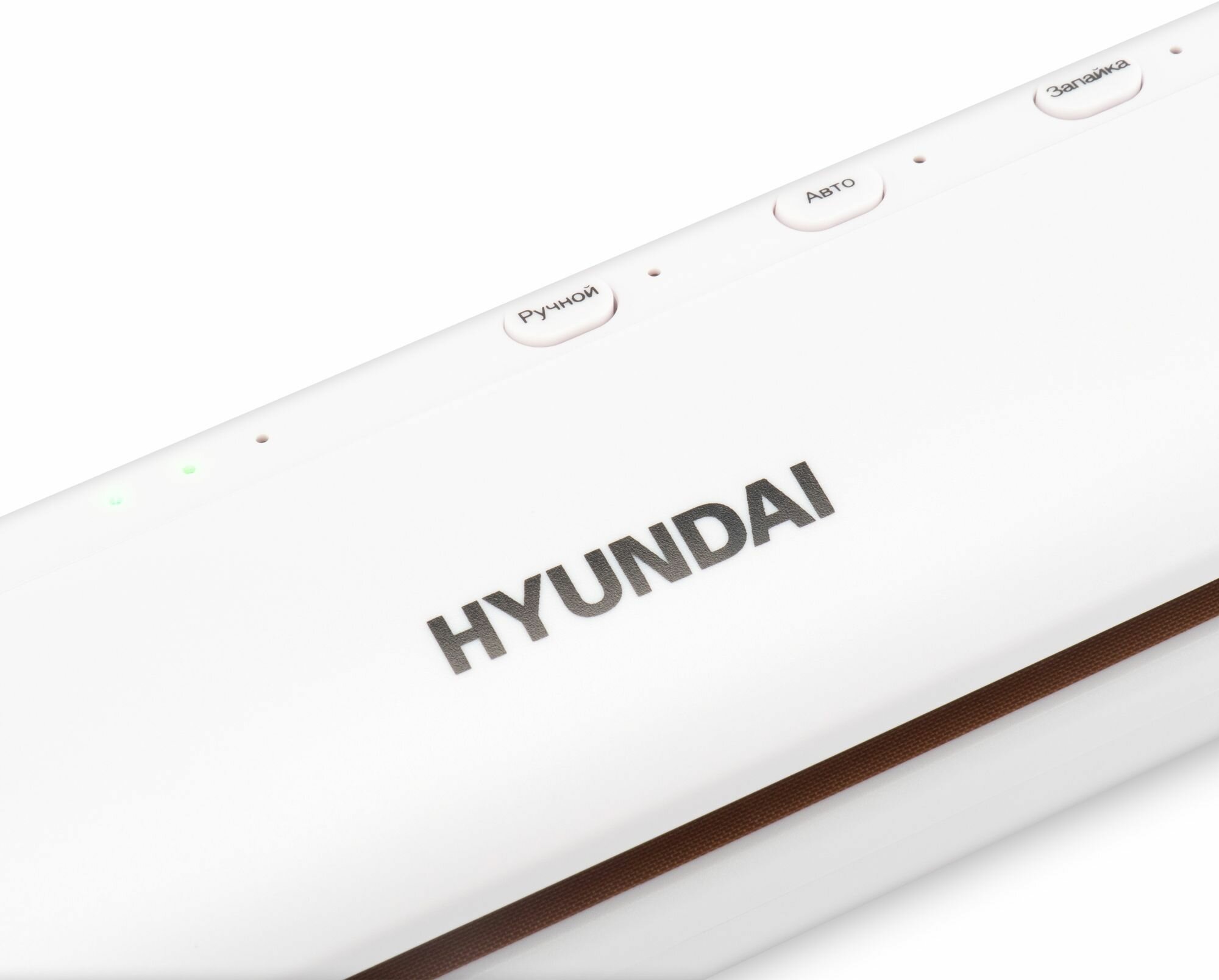Hyundai оснащён четырьмя программами и тремя кнопками: первая активирует режим «Авто», вторая – «Ручной», а третья – «Запайку». С помощью девайса можно не только продлить срок хранения продуктов, но также и быстрее замариновать шашлык или, к примеру, подготовить мясо к долгому томлению по технике СуВид.