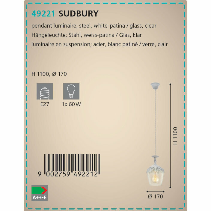 Подвес SUDBURY EGLO 1 х 60W E27 без источника света