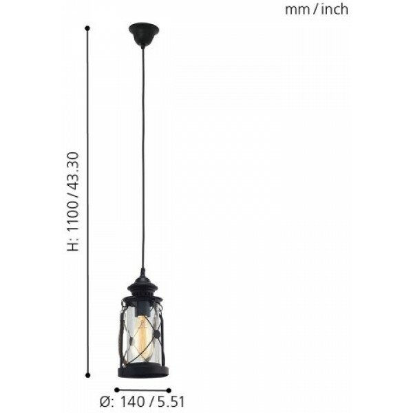 Подвес 49213 из серии «Vintage» от производителя Eglo (Австрия). Дизайн-стиль кантри. Отлично подойдет для такого типа помещений, как прихожая. Цвет товара прозрачный, черный. Используемые материалы: металл, стекло. С учетом технических характеристик мощности хватит для освещения 3.3 м2. Дизайн и форма плафона цилиндр. Цоколь E27. Вид ламп: накаливания. Количество ламп 1 шт. Мощность одной лампы составляет 60 Вт. Общая мощность 60 Вт. Напряжение 220-240 Вольт. Уровень защищенности от влаги и пыли IP20. Расширенная гарантия на товар 2 года. Высота 1100 мм. Диаметр 140 мм. Вес товара 0.998 кг. Комплектация: Подвес. Инструкция по сборке/использованию. Детали, необходимые для сборки товара.Товар упакован в картонную коробку. В случае доставки транспортными службами или маркетплейсом добавляются дополнительные элементы упаковки для защиты от повреждений при транспортировке - усиление картоном, внутренний наполнитель, стрейч-пленка.