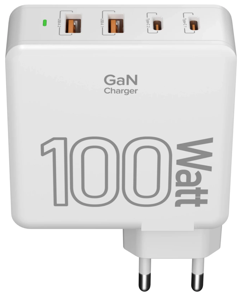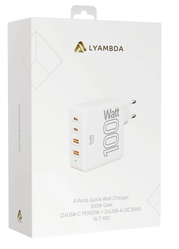 Зарядное устройство сетевое Lyambda 100Вт GaN c 4-мя выходами (2xUSB-C PD100W + 2xUSB-A QC 30W) SLT-100