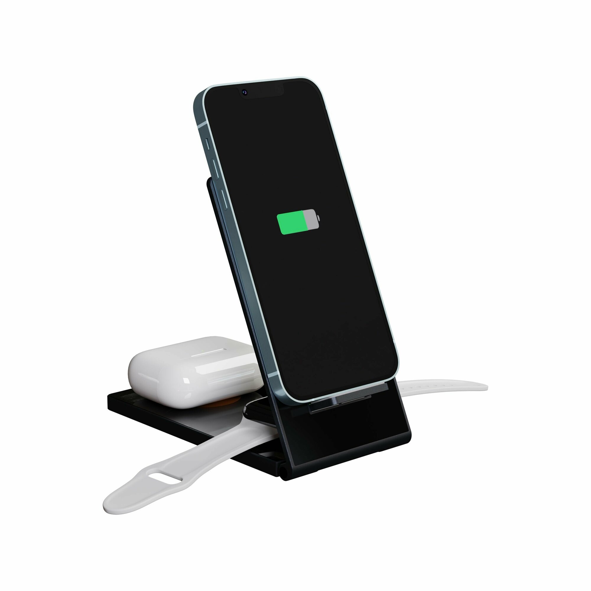 Магнитное беспроводное зарядное устройство Lyambda 3 в 1. Корпус устройства изготовлен из алюминиевого сплава в сочетании с закаленным стеклом и противоскользящим силиконовым основанием. Благодаря используемым материалам устройству не требуется дополнительная вентиляция, все тепло рассеивается через корпус. Складываемый корпус идеальное решение для путешествий.
