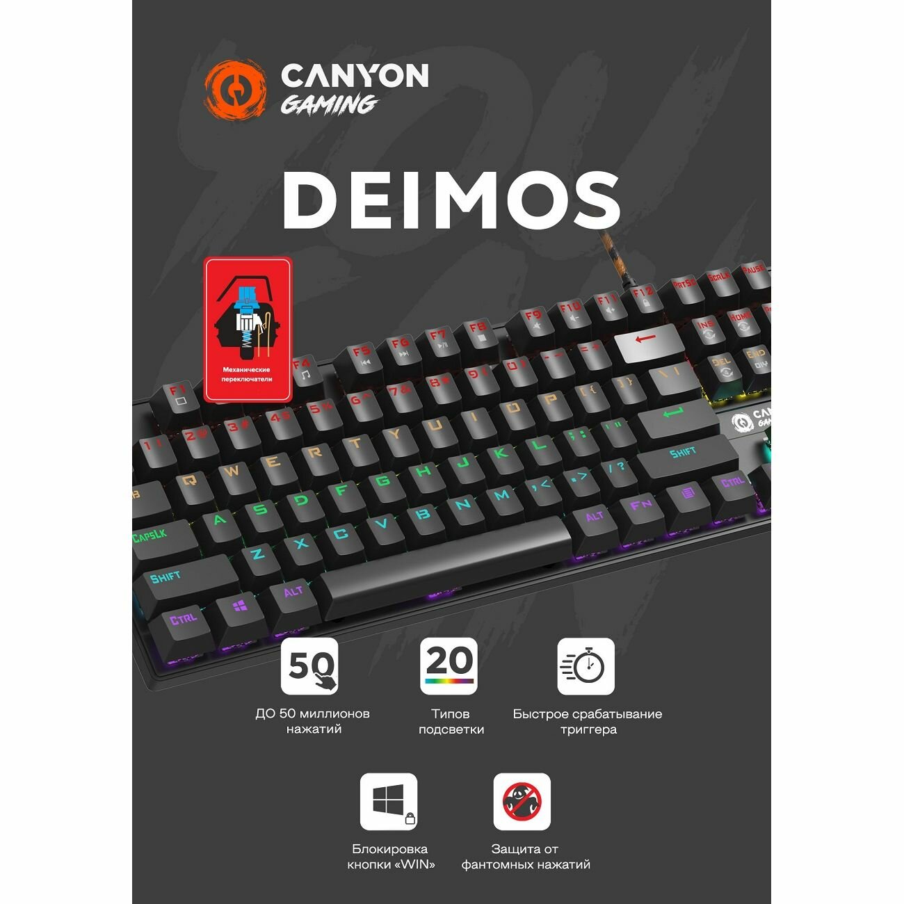 Клавиатура Canyon CND-SKB4-RU 104 кл Drinkey Blue подсветка клавиш 1.8 м DEIMOS GK-4