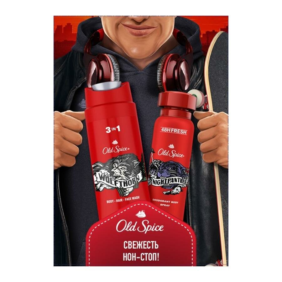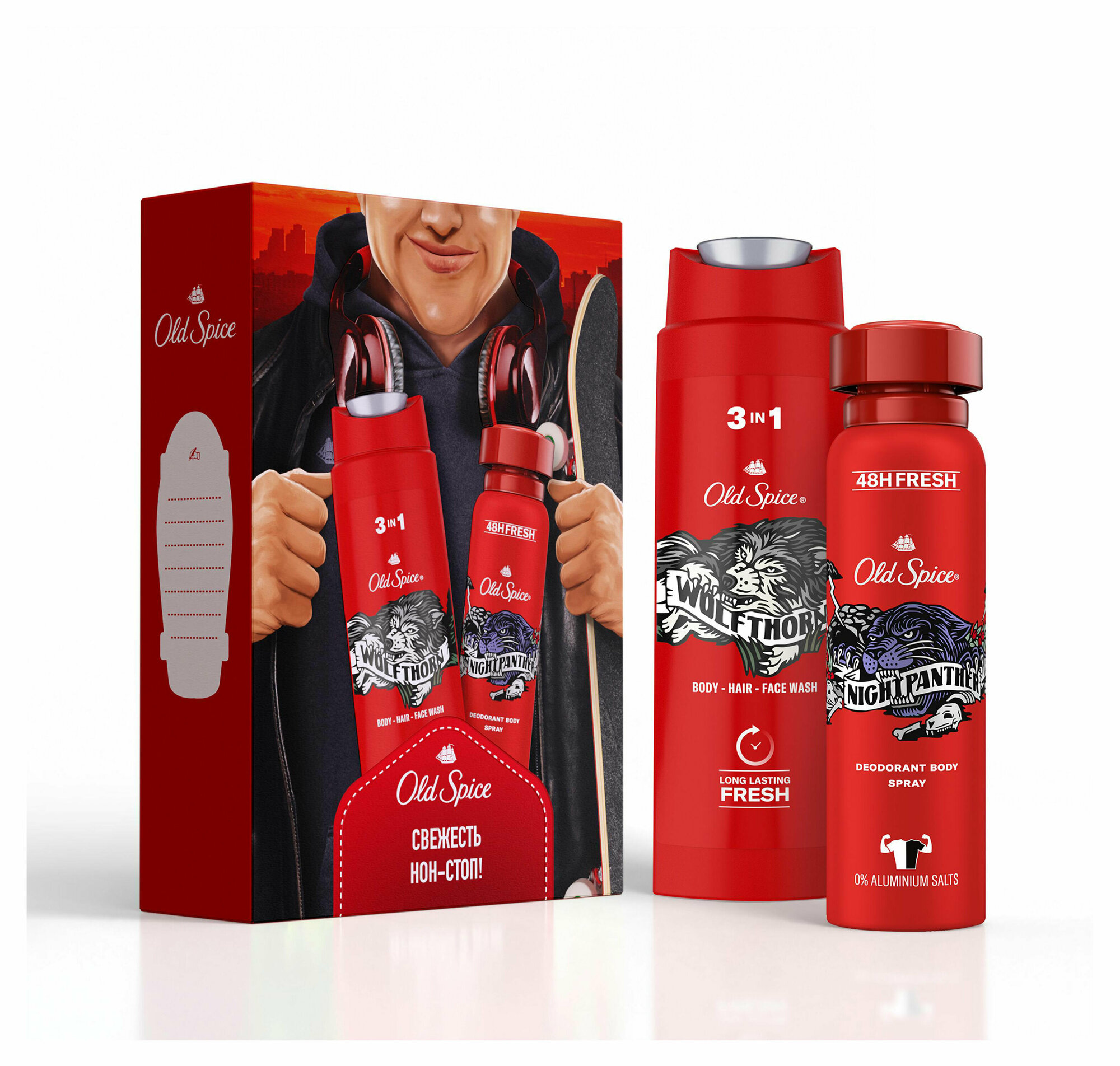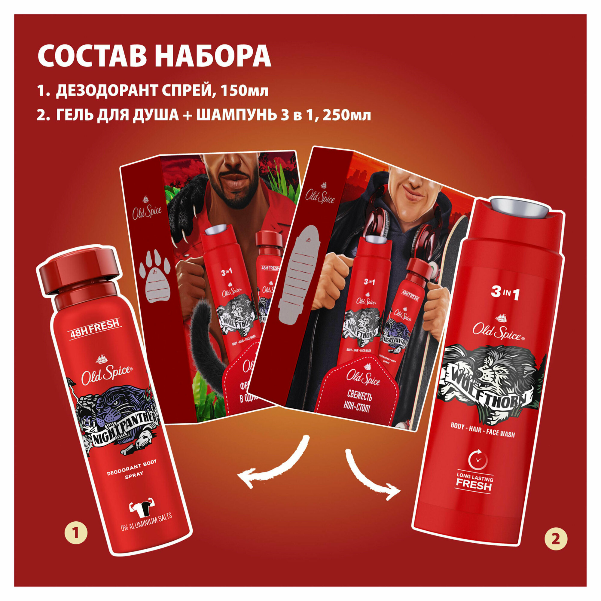 Подарочный набор для мужчин Old Spice Дезодорант-спрей Nightpanther 150 мл + Гель для душа 3в1 Wolfthorn 250 мл