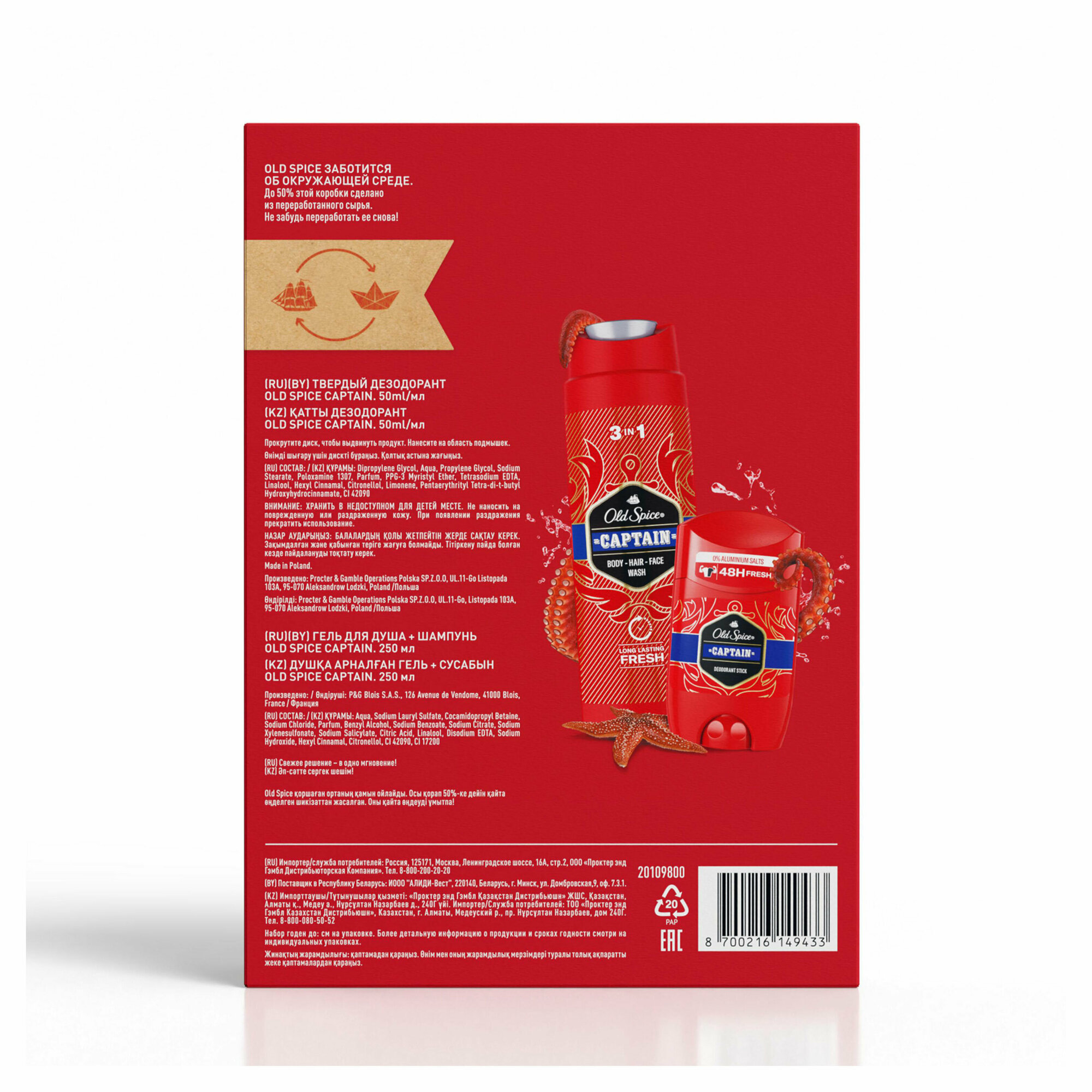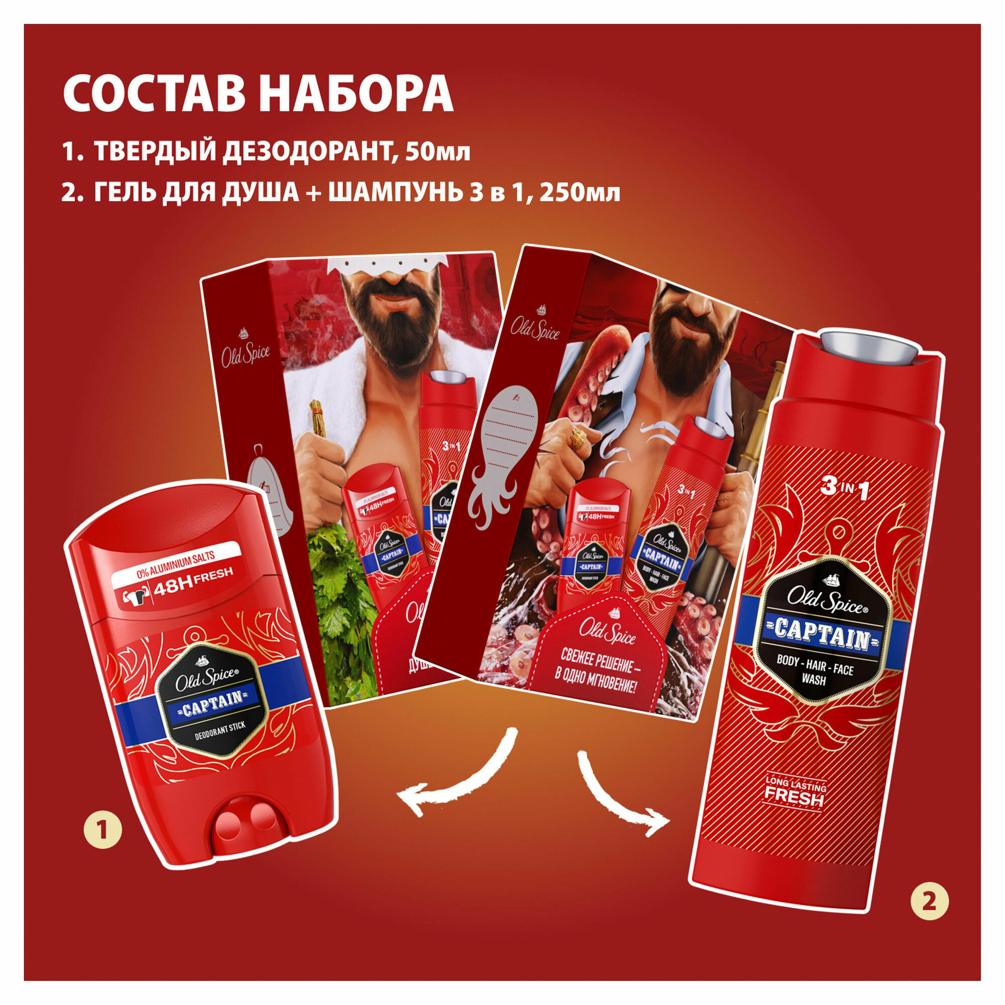 Подарочный набор для мужчин Old Spice Captain Дезодорант-стик 50 мл + Гель для душа 3в1 250 мл