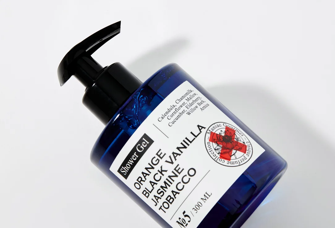 MANIAC GOURMET Гель для душа парфюмированный №5 Апельсин Черная ваниль Жасмин Табак 300 мл (ПЛ500/5)