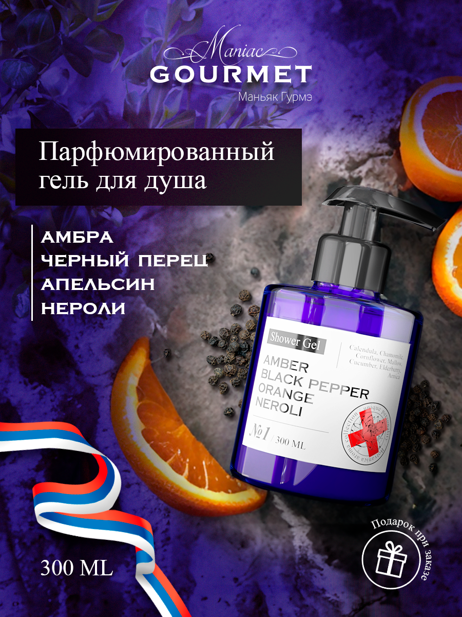 MANIAC GOURMET Гель для душа парфюмированный №1 Амбра Черный перец Апельсин Нероли 300 мл (ПЛ500/1)