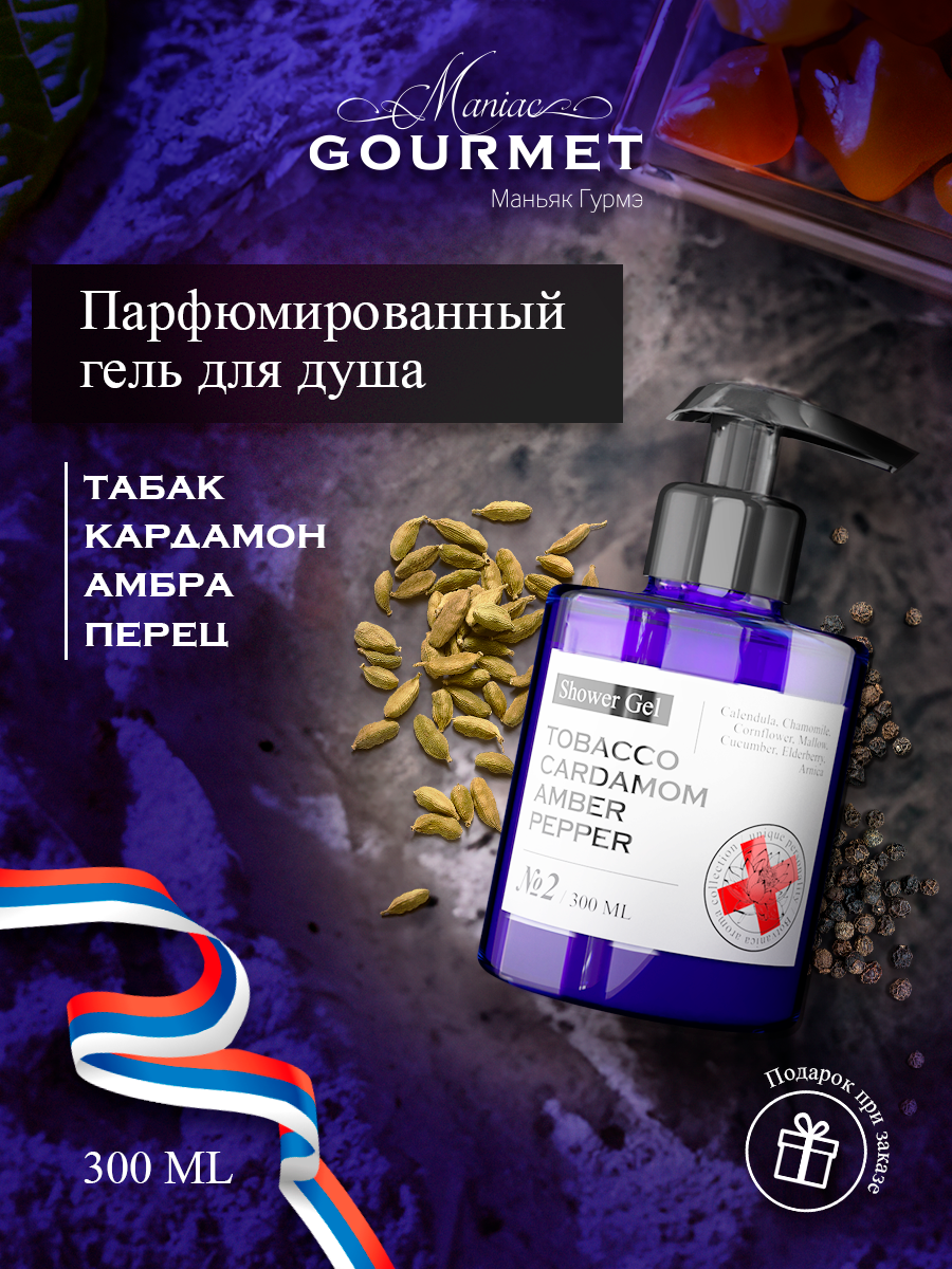 MANIAC GOURMET Гель для душа парфюмированный №2 Табак Кардамон Амбра Черный перец 300 мл (ПЛ500/2)