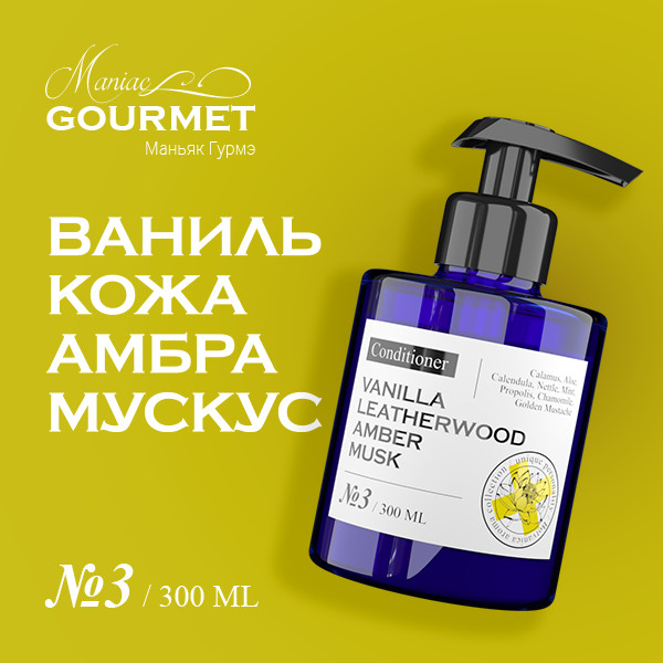MANIAC GOURMET Кондиционер парфюмированный для волос №3 Ваниль Кожа Амбра Мускус 300 мл (ПЛ200/3)